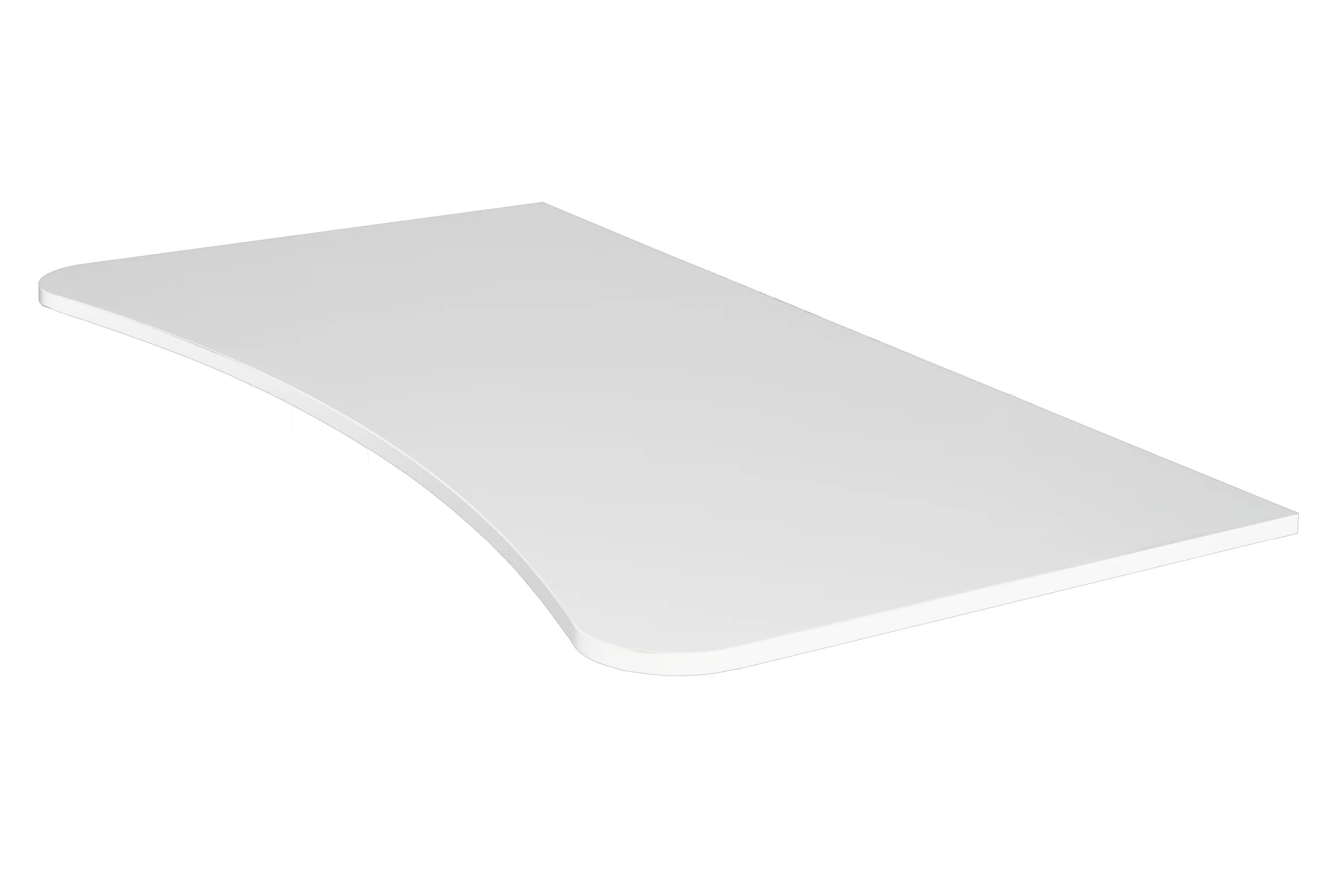 Qualitativ hochwertige Schreibtischplatte mit kratzfester und pflegeleichter Oberfläche, die durch ihre geschwungene Form zusätzliche Bewegungsfreiheit bietet.